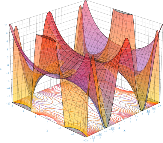Description Graphs of z = Re(cos(x+iy)) and an eight-degree taylor series approximation, selfmade with MuPad.