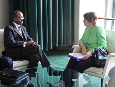 English: Foreign Minister of Somalia Mohamed Abdullah Omaar in a meeting with UNDP Administrator Helen Clark at the UN headquarters in New York.
