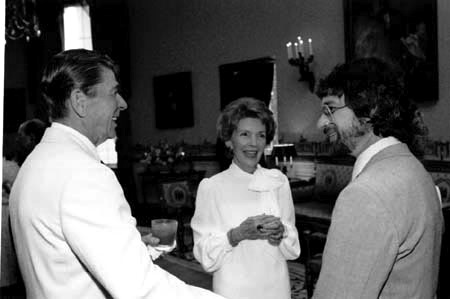 Ronald Wilson Reagan (left), Nancy Davis Reagan (centre), and Steven Allan Spielberg (right)