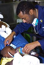 A Haitian boy receives treatment at a MINUSTAH logistics base