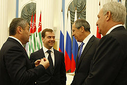However Raul Khadjimba lost the elections to Sergei Bagapsh. The tense situation in the republic led to the cancellation of the election results by the Supreme Court. After that a deal was struck between former rivals to run jointly — Bagapsh as a presidential candidate and Khadjimba as a vice presidential candidate. They received more than 90% of the votes in the new election.
