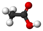 The hydrogen (H) atom in the carboxyl group (−COOH) in carboxylic acids such as acetic acid can be given off as an H+ ion (proton), giving them their acidic character. Acetic acid is a weak, effectively monoprotic acid in aqueous solution, with a pKa value of 4.8. Its conjugate base is acetate (CH3COO−). A 1.0 M solution (about the concentration of domestic vinegar) has a pH of 2.4, indicating that merely 0.4% of the acetic acid molecules are dissociated.