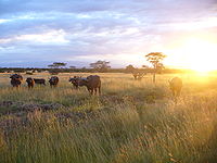 The African buffalo is one of the most successful grazers in Africa. It lives in swamps, floodplains as well as mopane grasslands and forests of the major mountains of Africa. Buffalo can be found from the highest mountains to sea level areas, and prefer habitat with dense cover such as reeds and thickets. Herds have also been found in open woodland and grassland.