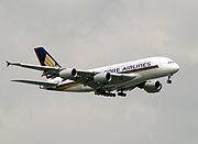 The Airbus A380 is a double-deck, four-engine airliner manufactured by the European corporation Airbus, an EADS subsidiary. The largest passenger airliner in the world, the A380 made its maiden flight on 27 April 2005 from Toulouse, France, and made its first commercial flight on 25 October 2007 from Singapore to Sydney with Singapore Airlines. The aircraft was known as the Airbus A3XX during much of its development phase, but the nickname Superjumbo has since become associated with it.