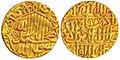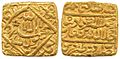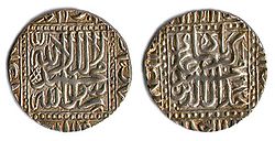 Akbar introduced coins with decorative floral motifs, dotted borders, quatrefoil and other types. His coins were both round and square in shape with a unique 'mehrab' (lozenge) shape coin highlighting numismatic calligraphy at its best. Akbar's portrait type gold coin (Mohur) is generally attributed to his son, Prince Salim (later Emperor Jahangir), who had rebelled and then sought reconciliation thereafter by minting and presenting his father with gold Mohur's bearing Akbar's portrait. The tolerant view of Akbar is represented by the 'Ram-Siya' silver coin type while during the latter part of Akbar's reign, we see coins portraying the concept of Akbar's newly promoted religion 'Din-e-ilahi' with the Ilahi type and Jalla Jalal-Hu type coins.