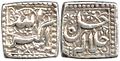 Silver square rupee of Akbar, Lahore mint,struck in Aban month of Ilahi