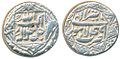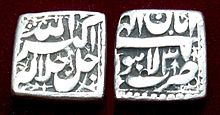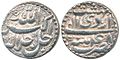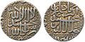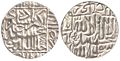 Silver coin of Akbar with inscriptions of the Islamic declaration of faith, the declaration reads: "There is none worthy of worship but Allah, and Muhammad is the messenger of Allah."