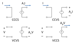 | Input | Output | Dependent source | Amplifier type |