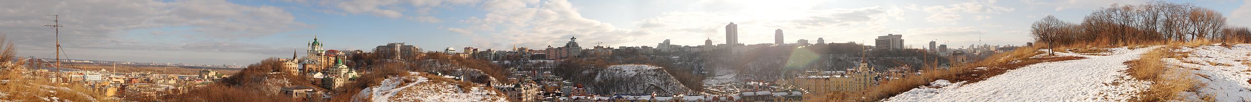 The descent, located between two hills, is the shortest passageway from the historic Old or Upper Town ( Ukrainian: Князівська Гора; Kniazivs’ka Hora) to the commercial Podil neighbourhood. One of the hills, known as Uzdyhal’nytsia, was the place where pre-Christian idols once stood (see: Baptism of Kiev), and another hill, called Zamkova Hora, served as a castle hill during the Middle Ages. For many centuries, this passageway was very steep and inconvenient, which is the reason why it was not inhabited for a long time. Therefore, the first buildings were erected here only in the 17th century, and the first apartment buildings began appearing towards the end of the 19th century.
