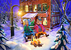 A clay animation scene from a Finnish television commercial