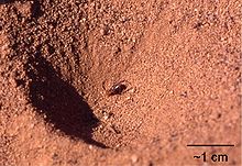 Sand pit trap with remains of an ant