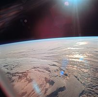 Earth seen from Apollo 11 just after leaving Earth orbit (translunar injection)