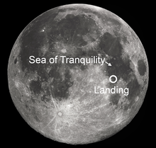 On July 19 at 17:21:50 UTC, Apollo 11 passed behind the Moon and fired its service propulsion engine to enter lunar orbit. In the thirty orbits that followed, the crew saw passing views of their landing site in the southern Sea of Tranquility ( Mare Tranquillitatis) about 20 kilometres (12 mi) southwest of the crater Sabine D (0.67408N, 23.47297E). The landing site was selected in part because it had been characterized as relatively flat and smooth by the automated Ranger 8 and Surveyor 5 landers along with the Lunar Orbiter mapping spacecraft and unlikely to present major landing or extra-vehicular activity (EVA) challenges.