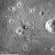 In 2009 the Lunar Reconnaissance Orbiter imaged the various Apollo landing sites on the surface of the Moon with sufficient resolution to see the descent stages of the lunar modules, scientific instruments, and foot trails made by the astronauts.
