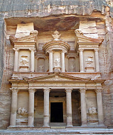 Facade of Al Khazneh in Petra, Jordan, built by the Nabateans