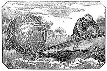 While Archimedes did not invent the lever, he gave an explanation of the principle involved in his work On the Equilibrium of Planes. Earlier descriptions of the lever are found in the Peripatetic school of the followers of Aristotle, and are sometimes attributed to Archytas. According to Pappus of Alexandria, Archimedes' work on levers caused him to remark: "Give me a place to stand on, and I will move the Earth." (Greek: δῶς μοι πᾶ στῶ καὶ τὰν γᾶν κινάσω) Plutarch describes how Archimedes designed block-and-tackle pulley systems, allowing sailors to use the principle of leverage to lift objects that would otherwise have been too heavy to move. Archimedes has also been credited with improving the power and accuracy of the catapult, and with inventing the odometer during the First Punic War. The odometer was described as a cart with a gear mechanism that dropped a ball into a container after each mile traveled.
