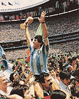 Diego Maradona celebrating after having won the 1986 World Cup.