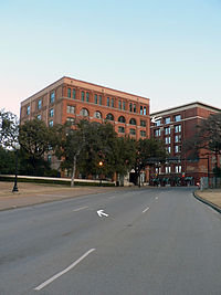 To pass through downtown Dallas, a route west along Dallas' Main Street, rather than Elm Street (one block to the north) was chosen, because this was the traditional parade route, and provided the maximal building and crowd views. The Main Street route precluded a direct turn onto the Fort Worth Turnpike exit (which served also as the Stemmons Freeway exit), which was the route to the Trade Mart, because this exit was accessible only from Elm Street. The planned motorcade route thus included a short one-block turn at the end of the downtown segment of Main Street, onto Houston Street for one block northward, before turning again west onto Elm, in order to proceed through Dealey Plaza before exiting Elm onto the Stemmons Freeway. The Texas School Book Depository was situated at this corner of Houston and Elm.