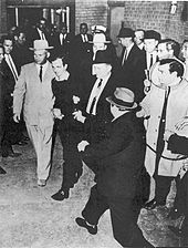 According to one of the arresting officers, M.N. McDonald, Oswald resisted arrest and was attempting to draw his pistol when he was struck and forcibly restrained by the police. He was charged with the murders of President Kennedy and Officer Tippit later that night. Oswald denied shooting anyone and claimed he was a patsy who was arrested because he had lived in the Soviet Union. Oswald's case never came to trial because two days later, while being escorted to a car for transfer from Dallas Police Headquarters to the Dallas County Jail, he was shot and killed by Dallas nightclub owner Jack Ruby, live on American television. Arrested immediately after the shooting, Ruby later said that he had been distraught over the Kennedy assassination and that killing Oswald would spare "…Mrs. Kennedy the discomfiture of coming back to trial."
