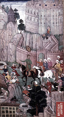 Babur and the Mughal Army at the Urvah valley in Gwalior.