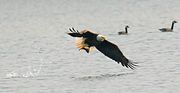 The Bald Eagle (Haliaeetus leucocephalus) is a bird of prey found in North America that is most recognizable as the national bird and symbol of the United States of America. This sea eagle has two known sub-species and forms a species pair with the White-tailed Eagle. Its range includes most of Canada and Alaska, all of the contiguous United States and northern Mexico. It is found near large bodies of open water with an abundant food supply and old-growth trees for nesting.