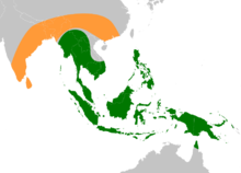 Original native ranges of the ancestors of modern edible bananas. Musa acuminata is shown in green and Musa balbisiana in orange.