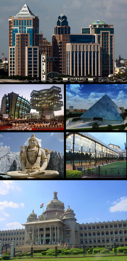 | Clockwise from top: UB City, Infosys, Glass house at Lal Bagh, Vidhana Soudha, Shiva statue, Bagmane Tech Park | |