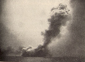 The enemy was shooting superbly. Twice the Derfflinger came under their infernal hail and each time she was hit. But the Queen Mary was having a bad time; engaged by the Seydlitz as well as the Derfflinger, she met her doom at 1626. A vivid red flame shot up from her forepart; then came an explosion forward, followed by a much heavier explosion amidships. Immediately afterwards, she blew up with a terrific explosion, the masts collapsing inwards and the smoke hiding everything.—Commander von Hase,
