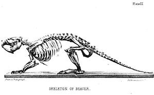 Fossil remains of beavers are found in the peat and other superficial deposits of Britain and the continent of Europe; while in the Pleistocene formations of Britain and Siberia, remains of a giant extinct beaver have been found, Trogontherium cuvieri, representing a genus by itself.