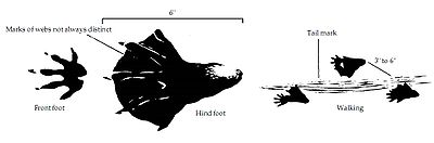 Although superficially similar to each other, there are several important differences between the two species. Eurasian beavers tend to be slightly larger, with larger, less rounded heads, longer, narrower muzzles, thinner, shorter and lighter underfur, narrower, less oval-shaped tails and shorter shin bones, making them less capable of bipedal locomotion than the North American species. Eurasian beavers have longer nasal bones than their North American cousins, with the widest point being at the end of the snout for the former, and in the middle for the latter. The nasal opening for the Eurasian species is triangular, unlike that of the North American race which is square. The foramen magnum is rounded in the Eurasian beaver, and triangular in the North American. The anal glands of the Eurasian beaver are larger and thin-walled with a large internal volume compared to that of the North American breed. Finally, the guard hairs of the Eurasian beaver have a longer hollow medulla at their tips. Fur colour is also different. Overall, 66% of Eurasian beavers have pale brown or beige fur, 20% have reddish brown, nearly 8% are brown and only 4% have blackish coats. In North American beavers, 50% have pale brown fur, 25% are reddish brown, 20% are brown and 6% are blackish.