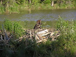 The beaver (genus Castor) is a primarily nocturnal, large, semi-aquatic rodent. Castor includes two extant species, North American beaver (Castor canadensis) (native to North America) and Eurasian beaver (Castor fibre) ( Eurasia). Beavers are known for building dams, canals, and lodges (homes). They are the second-largest rodent in the world (after the capybara). Their colonies create one or more dams to provide still, deep water to protect against predators, and to float food and building material. The North American beaver population was once more than 60 million, but as of 1988 was 6–12 million. This population decline is due to extensive hunting for fur, for glands used as medicine and perfume, and because their harvesting of trees and flooding of waterways may interfere with other land uses.