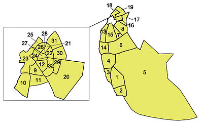 Benghazi is one of Libya's 22 shabiyahs (people's districts). Benghazi shabiyah is divided into 32 Basic People's Congress administrative divisions, in which the responsibilities of the corresponding political units of the same name fall. The official 32 Basic People's Congresses of Benghazi are: