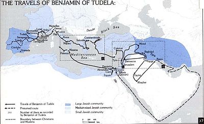 - The Itinerary of Benjamin of Tudela. trans. Marcus Nathan Adler. 1907: includes map of route (p. 2) and commentary.