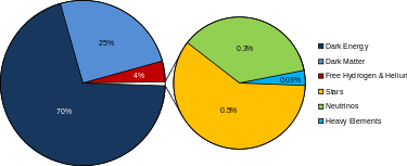 Independent lines of evidence from Type Ia supernovae and the CMB imply that the Universe today is dominated by a mysterious form of energy known as dark energy, which apparently permeates all of space. The observations suggest 73% of the total energy density of today's Universe is in this form. When the Universe was very young, it was likely infused with dark energy, but with less space and everything closer together, gravity had the upper hand, and it was slowly braking the expansion. But eventually, after numerous billion years of expansion, the growing abundance of dark energy caused the expansion of the Universe to slowly begin to accelerate. Dark energy in its simplest formulation takes the form of the cosmological constant term in Einstein's field equations of general relativity, but its composition and mechanism are unknown and, more generally, the details of its equation of state and relationship with the Standard Model of particle physics continue to be investigated both observationally and theoretically.