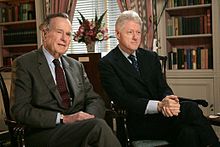 In the aftermath of the 2005 Asian tsunami, U.N. Secretary-General Kofi Annan appointed Clinton to head a relief effort. After Hurricane Katrina, Clinton joined with fellow former President George H. W. Bush to establish the Bush-Clinton Tsunami Fund in January 2005, and the Bush-Clinton Katrina Fund in October of that year. As part of the tsunami effort, these two ex-presidents appeared in a Super Bowl XXXIX pre-game show, and traveled to the affected areas. They also spoke together at the funeral of Boris Yeltsin in 2007.