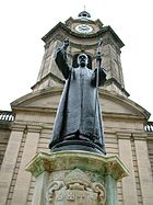 | From top left: Birmingham City Centre from the west; Selfridges in the Bull Ring; Birmingham Town Hall; St. Philip's Cathedral; the University of Birmingham; Alpha Tower. | |||