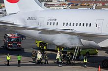 On January 16, 2013, All Nippon Airways Flight NH-692, en route from Ube to Tokyo Haneda, had received indications of battery problems, followed by a burning smell while climbing from Ube, about 35 nautical miles west of Takamatsu, Japan. The pilots decided to divert to Takamatsu, where the plane landed, vacated the runway, and was evacuated via slides. One passenger received a serious injury, and two other passengers received minor injuries during the evacuation. Inspection of the battery compartment revealed that they had suffered a battery fire. This, along with a very similar incident of a parked Japan Airlines 787 at Boston's Logan International Airport that also had a battery fire within the same week, led the Federal Aviation Administration to ground all Boeing 787s in service at the time.