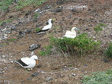 Boobies hunt fish by diving from a height into the sea and pursuing their prey underwater. Facial air sacs under their skin cushion the impact with the water. Boobies are colonial breeders on islands and coasts. They normally lay one or more chalky-blue eggs on the ground or sometimes in a tree nest.