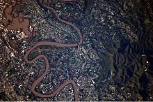 The city is on a low-lying floodplain. Many suburban creeks criss-cross the city, increasing the risk of flooding. The city has suffered three major floods since colonisation, in February 1893, January 1974, and January 2011. The 1974 Brisbane flood occurred partly as a result of " Cyclone Wanda". Heavy rain had fallen continuously for three weeks before the Australia Day weekend flood (26 – 27 January 1974). The flood damaged many parts of the city, especially the suburbs of Oxley, Bulimba, Rocklea, Coorparoo, Toowong and New Farm. The City Botanic gardens were inundated, leading to a new colony of mangroves forming in the City Reach of the Brisbane River.