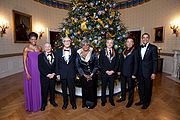 Springsteen was among the recipients of the Kennedy Center Honours, an annual award to figures from the world of arts for their contribution to American culture, in December 2009. President Obama gave a speech in which he talked about how Springsteen has incorporated the life of regular Americans in his expansive pallette of songs and how his concerts are beyond the typical rock-and-roll concerts, how, apart from being high-energy concerts, they are "communions". He ended the remark "while I am the president, he is The Boss". Tributes were paid by several well-known celebrities including Jon Stewart (who described Springsteen's "unprecedented combination of lyrical eloquence, musical mastery and sheer unbridled, unadulterated joy"). A musical tribute featured John Mellencamp Ben Harper and Jennifer Nettles, Rob Mathes band. Melissa Etheridge Eddie Vedder and Sting, The Joyce Garrett Choir