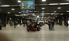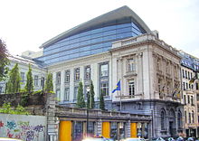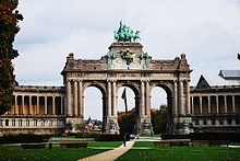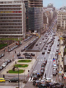 | A collage with several views of Brussels, Top: View of the Northern Quarter business district, 2nd left: Floral carpet event in the Grand Place, 2nd right: Brussels City Hall and Mont des Arts area, 3rd: Cinquantenaire Park, 4th left: Manneken Pis, 4th middle: St. Michael and St. Gudula Cathedral, 4th right: Congress Column, Bottom: Royal Palace of Brussels | |||