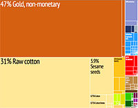 There is mining of copper, iron, manganese, gold, cassiterite (tin ore), and phosphates. These operations provide employment, international aid, and in some cases hospitals at mines for the public. Gold production increased 32% in 2011 at six gold mine sites, making Burkina Faso the fourth largest gold producer in Africa, after South Africa, Mali and Ghana.