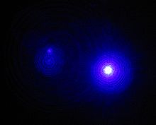 Helium–cadmium lasers are a common source of blue-ultraviolet laser light. They operate at either 325 or 422 nm and are used in fluorescence microscopes and various laboratory experiments. Cadmium selenide quantum dots emit bright luminescence under UV excitation (He-Cd laser, for example). The colour of this luminescence can be green, yellow or red depending on the particle size. Colloidal solutions of those particles are used for imaging of biological tissues and solutions with a fluorescence microscope.