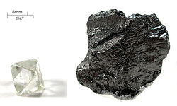 | Mohs hardness | 10 (diamond) 1-2 (graphite)  |