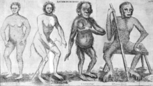 The theological concerns were twofold: first, putting man at the same level as monkeys or apes would lower the spiritually higher position that man was assumed to have in the great chain of being, and second, because the Bible says man was created in the image of God ( theomorphism), if monkeys/apes and humans were not distinctly and separately designed, that would mean monkeys and apes were created in the image of God as well. This was something many could not accept. The conflict between world views based on science and theology that was caused by asserting man was a type of animal would simmer for a century until the much greater, and still ongoing, creation–evolution controversy began in earnest with the publication of On the Origin of Species by Charles Darwin in 1859.