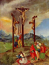 The Crucifixion of Christ featuring Saint Dismas and criminal Gestas by Albrecht Altdorfer, 1526