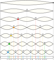 For a repeating wave, the velocity, v, equals the wavelength, λ, times the frequency, f. v = λf On a cello string, waves reflect from both ends. The superposition of reflecting waves results in a standing wave pattern, but only for wavelengths λ = 2L, L, L/2, … = 2L/n, where L is the length of the string and n is a positive whole number. Therefore the only frequencies produced on a single string are f = nv/(2L). Timbre is largely determined by the amount of each of these harmonics in the sound. Different instruments have different harmonic content for the same pitch. A real string vibrates at harmonics that are not perfect multiples of the fundamental. This results in a little in-harmonicity, which gives richness to the tone and covers up slight de-tunings of different notes in a chord. These considerations represent an idealized situation, which pertains to a freely vibrating ideal string with fixed endpoints. The pressure of the bow on the string while it vibrates can cause a noticeable departure from this ideal situation.