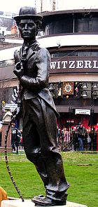 A statue of Charlie Chaplin was made by John Doubleday, to stand in Leicester Square in London, United Kingdom. It was unveiled by Sir Ralph Richardson in 1981. A bronze statue of him is at Waterville, County Kerry.