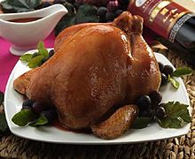 The meat of the chicken, also called "chicken", is a type of poultry meat. Because of its relatively low cost, chicken is one of the most used meats in the world. Nearly all parts of the bird can be used for food, and the meat can be cooked in many different ways. Popular chicken dishes include roasted chicken, fried chicken, chicken soup, Buffalo wings, tandoori chicken, butter chicken, and chicken rice. Chicken is also a staple of many fast food restaurants.