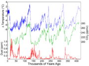 In recent usage, especially in the context of environmental policy, the term "climate change" often refers to changes in modern climate (see global warming). For information on temperature measurements over various periods, and the data sources available, see temperature record. For attribution of climate change over the past century, see attribution of recent climate change.
